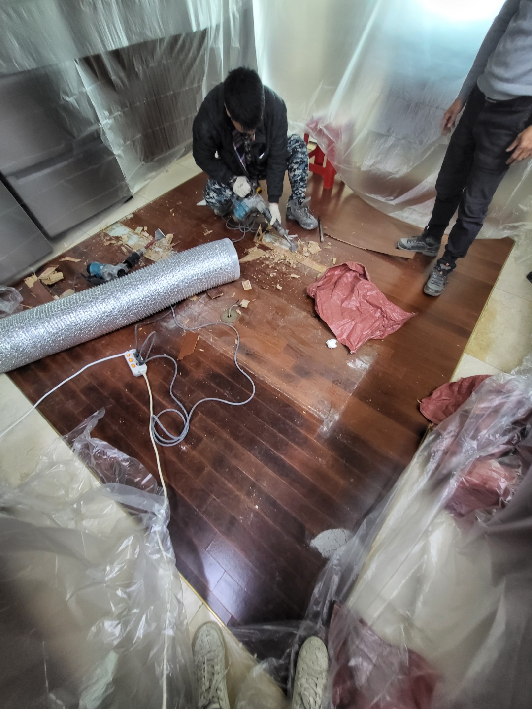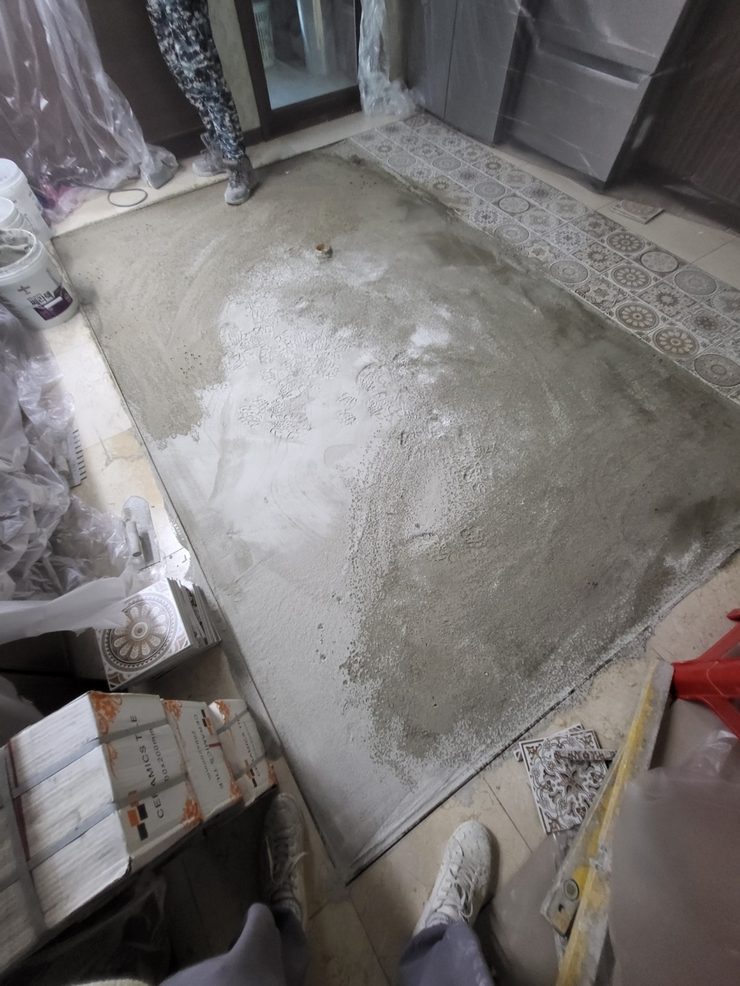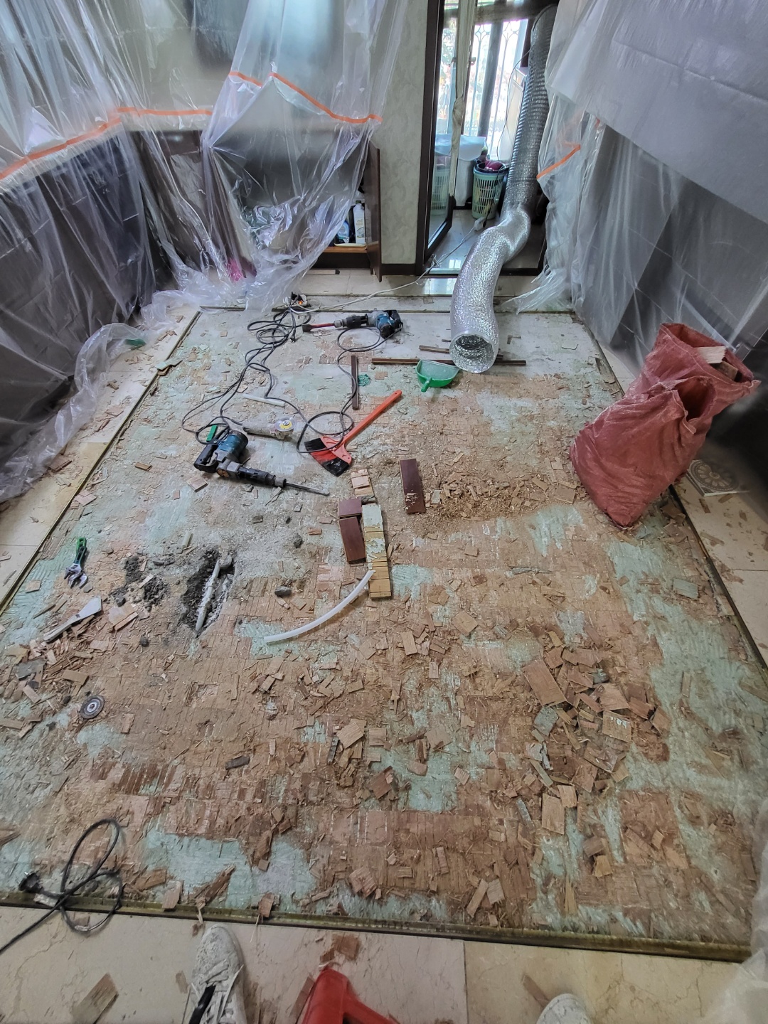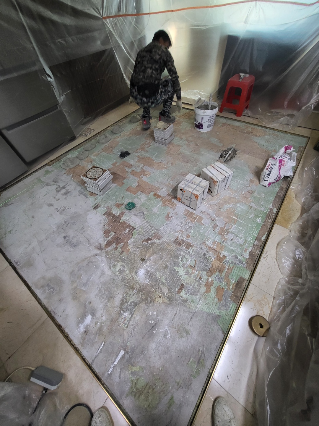 보수공사 마루바닥 철거후 타일 인테리어 시공 , 벽타일 하자로 인한 타일시공