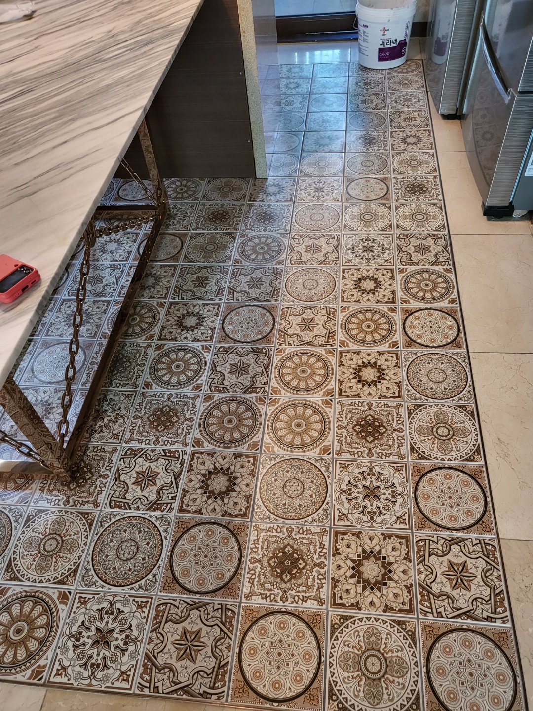 내용 : 마루바닥 철거후 타일 인테리어 시공 , 벽타일 하자로 인한 타일시공